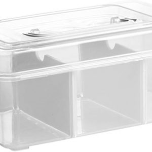 Sturdy and versatile storage organizer box made of plastic with handle and latch lock.