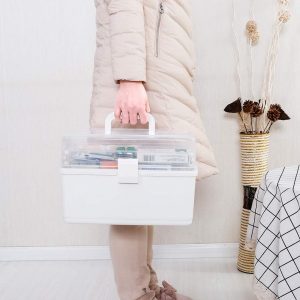 Lightweight and durable, sturdy and non-toxic. Portable medicine organizer and family first aid kit. With a comfortable handle, easy to take it indoor or outdoor. Great for family, office, school, dormitory, sports team, travel, etc.