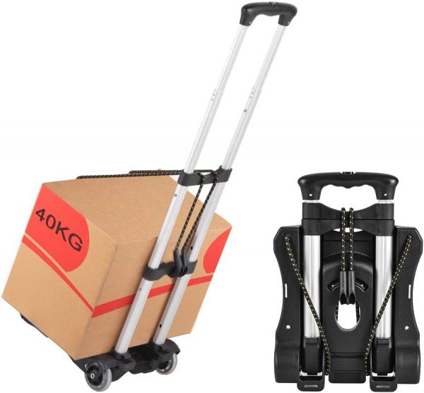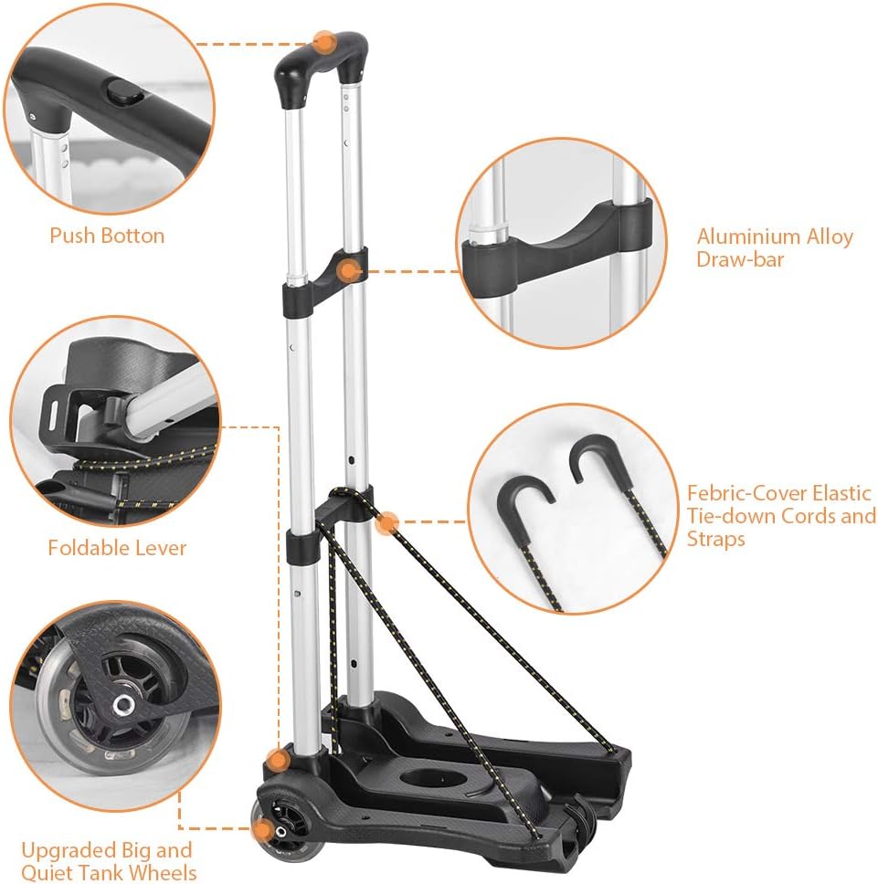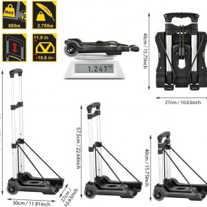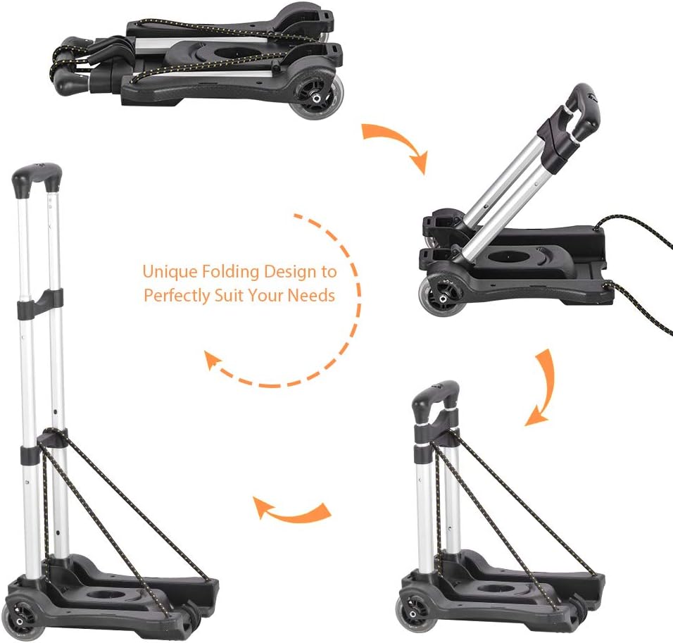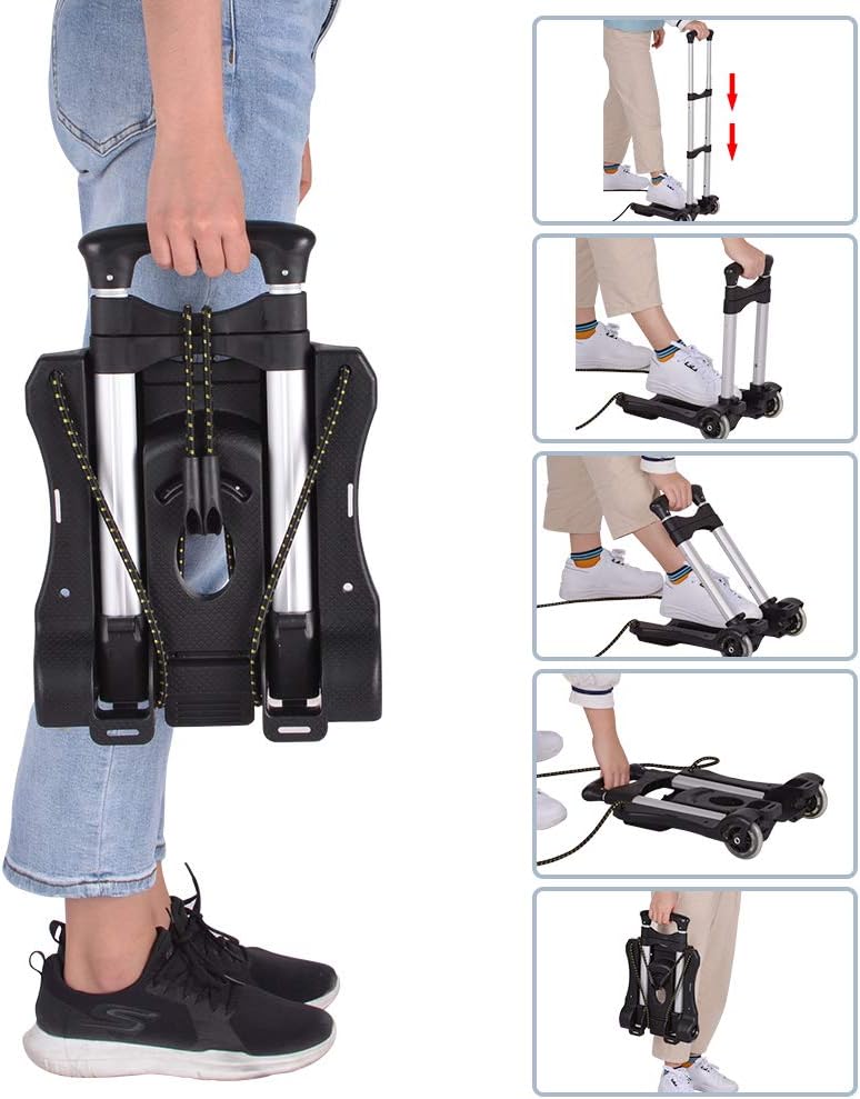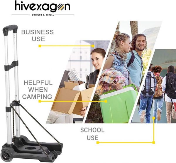 Hivexagon Folding Luggage Cart 88lbs Load Capacity Compact Lightweight and Durable Aluminum Alloy Travel Trolley for Luggage, Personal, Travel, Moving and Office Use