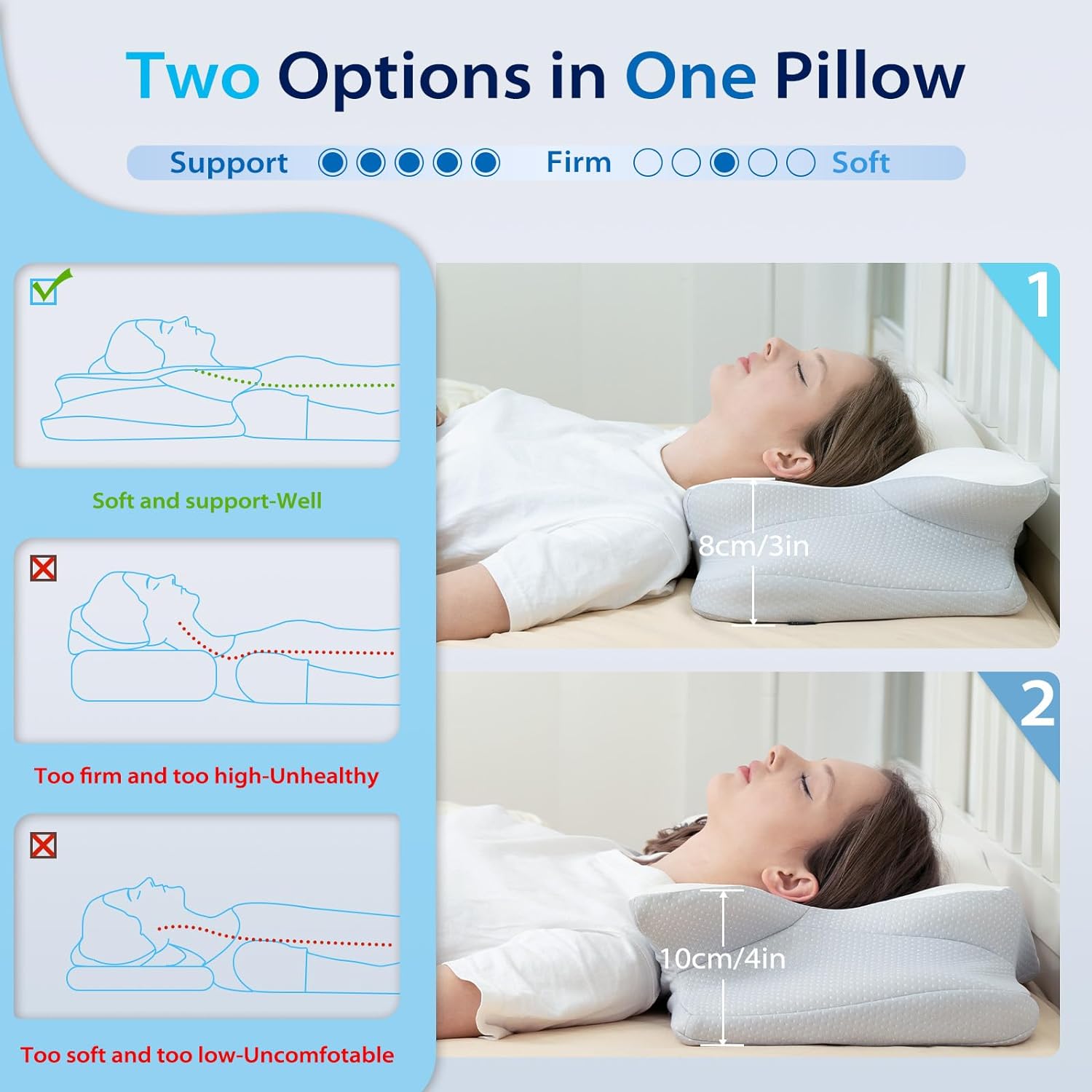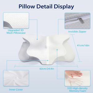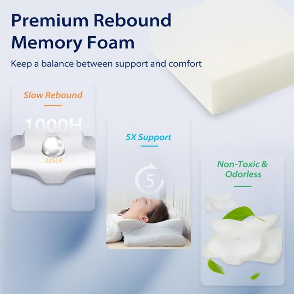 HOMCA Cervical Pillow for Neck Pain Relief, Ergonomic Neck Support Pillows for Sleeping, Orthopedic Memory Foam Neck Pillow for Side Back Stomach Sleepers with Soft Breathable Pillowcase