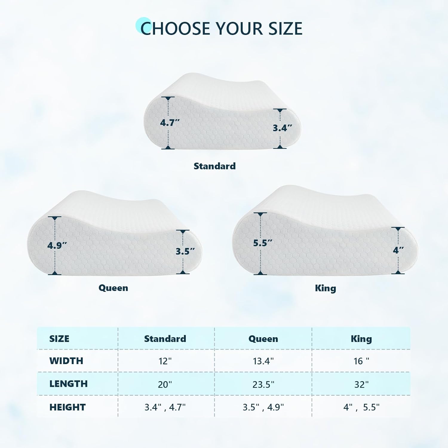 ERGONOMIC DESIGN: The cooling pillow curve design of the pillow and the slow rebound sponge perfectly fit the contour of every head, neck and shoulder, which can relieve your body pressure, reduce your shoulder, head and neck, back pain, relieve your insomnia, and give you a healthy sleep.