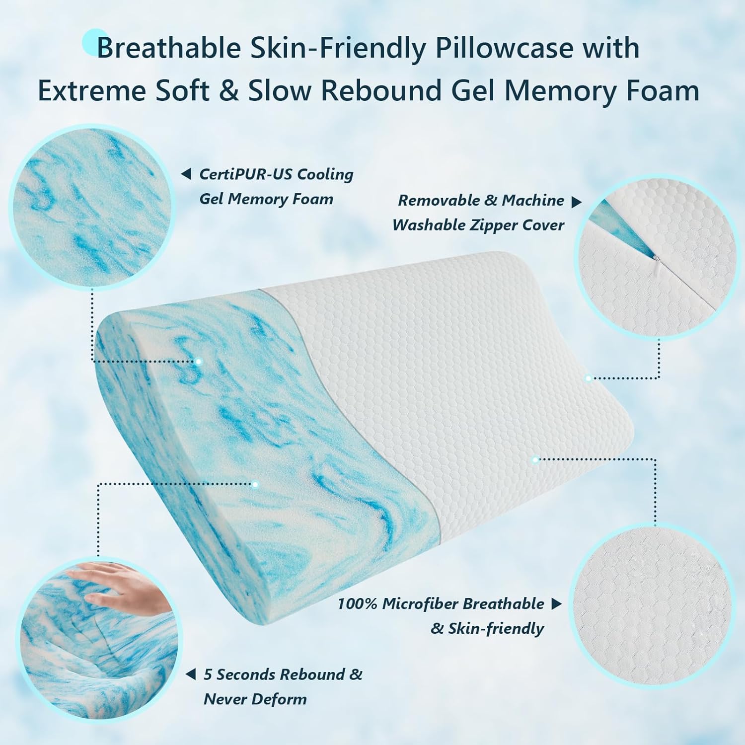 BREATHABLE & COOLING: The pillowcase is made of breathable fabric with a soft and smooth texture that prevents wrinkles on your skin, is kind to your skin and hair, and is removable for machine washing. The pillow inner is filled with cooling gels that will give you a cool sleep and prevent you from waking up hot when you fall asleep, allowing you experience a deep sleep all night.