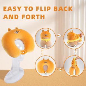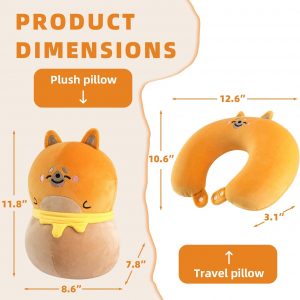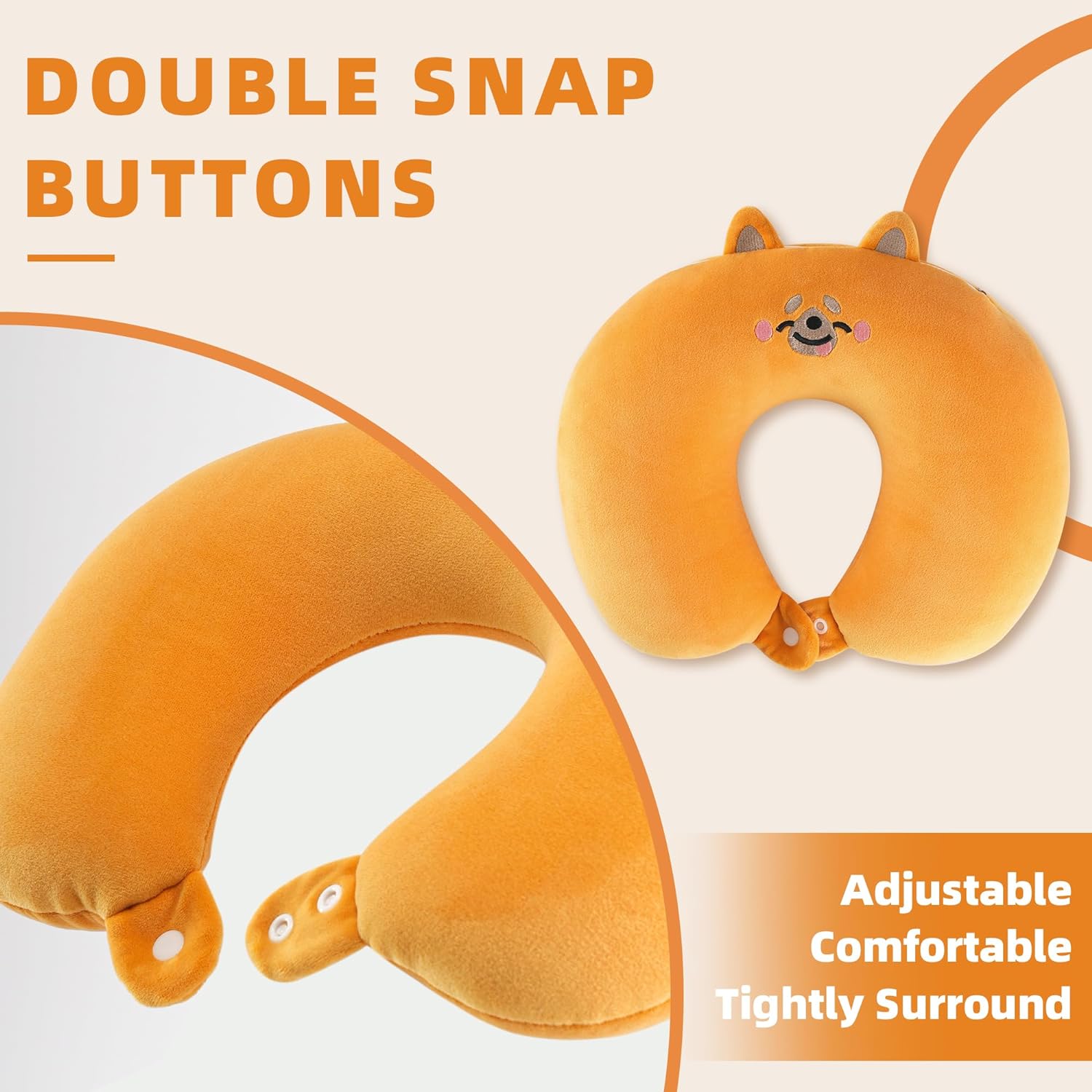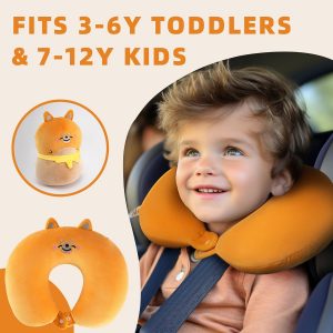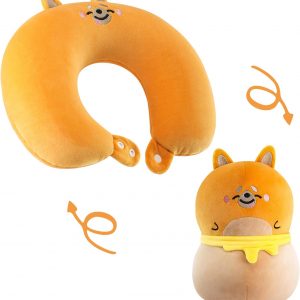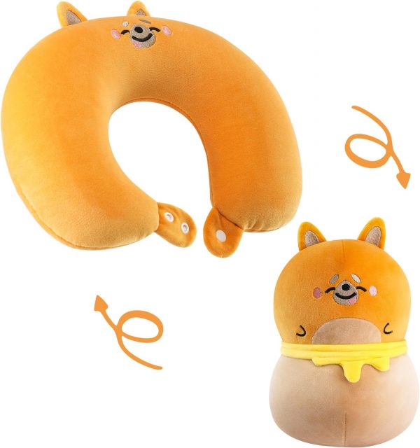 Homerchant Kids Travel Pillow Toddler Neck Pillow for Airplanes Sleeping Convertible Dog Plush 2in1 Neck Pillow Airplane Sleeping Cars Train Road Trips