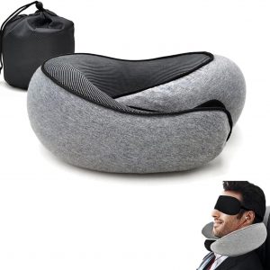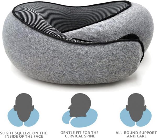 【Ergonomic Design】Our travel pillow features an ergonomic neck and chin wrap design that allows you to maintain an upright position and alleviate neck, shoulder and back discomfort caused by car and air travel.
