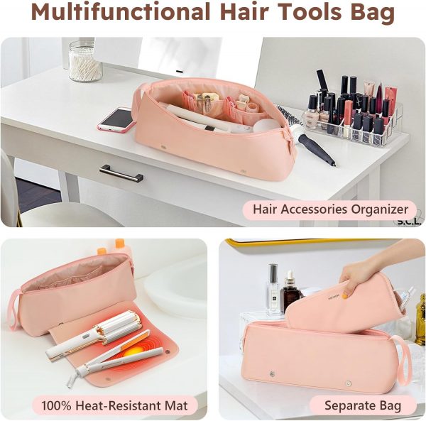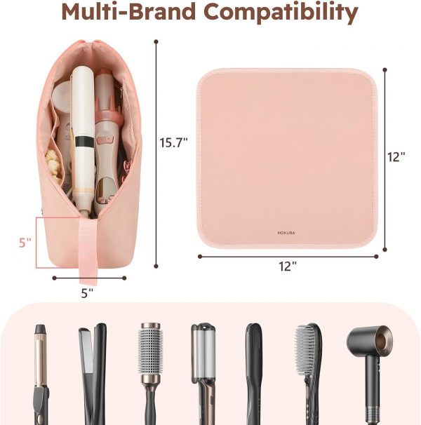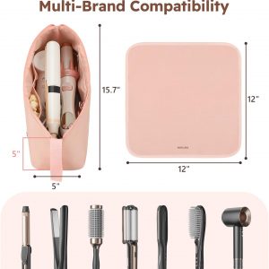 【100% Heat-resistant】The pad of the hair tool case is made of premium neoprene, heat-resistant and anti-scald, protecting your countertop or vanity safely from heat damage.