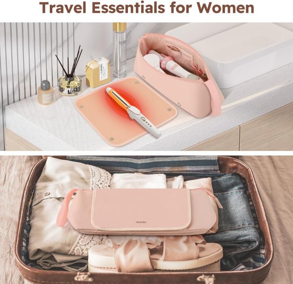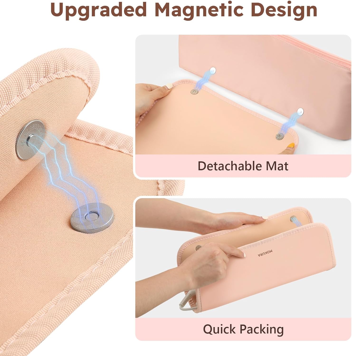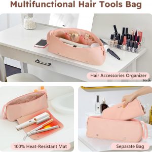 【Magnetic Detachable】The hair tools bag features magnetic closure for easy separation, allowing you to use the mat and bag separately. This mat conveniently stores your hot hair tools without waiting for them to cool down.