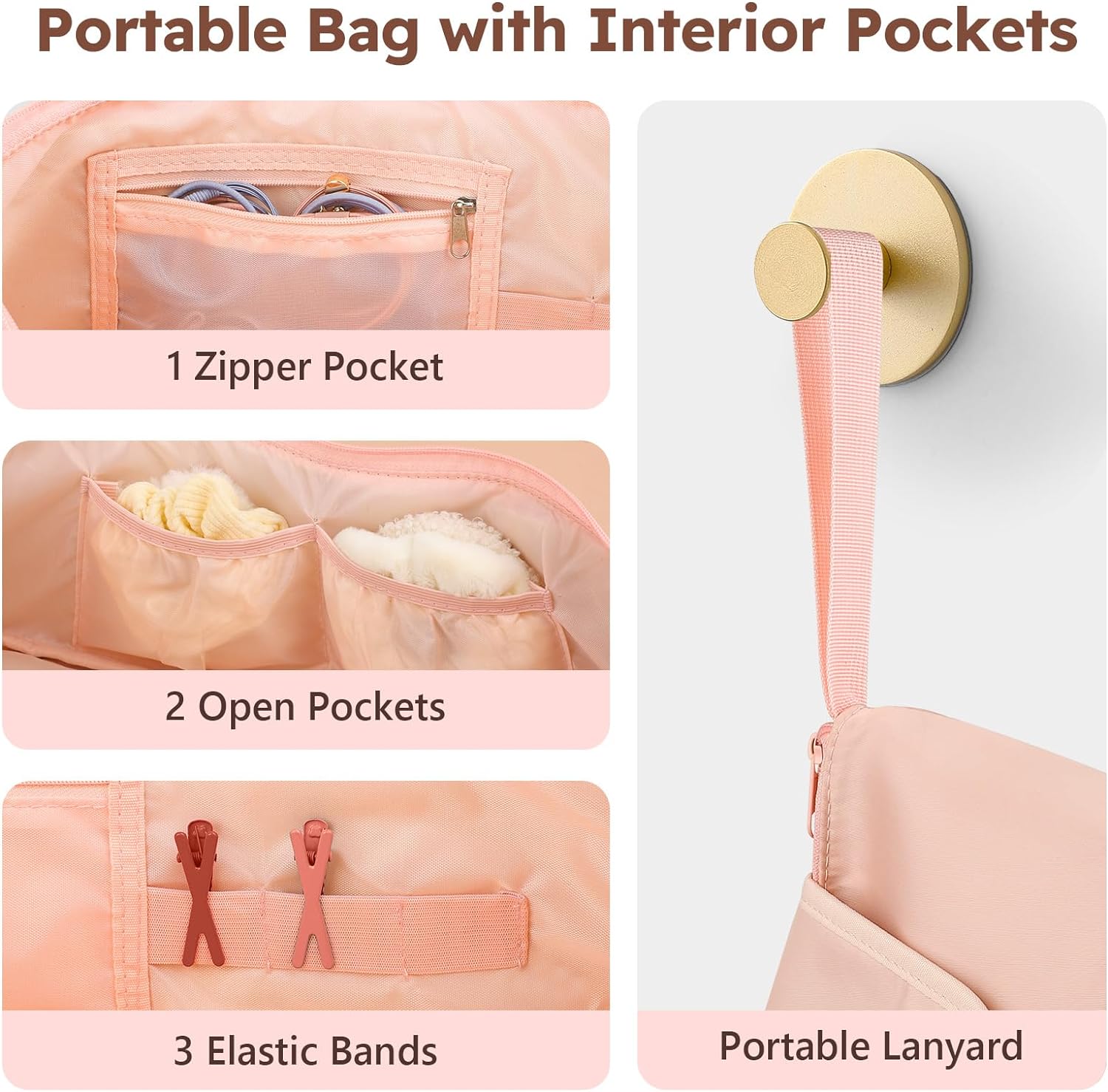 【Multiple Pockets】The hair tool pouch has 1 zipper pocket, 2 open pockets, and 3 elastic straps, keeping your various hair accessories neatly organized.