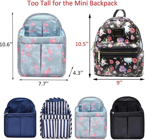 HOYOFO Mini Backpack Organizer Insert Small Bag Divider for Rucksack Purse Lightweight Nylon Shoulder Bag Organizer Insert, Navy Blue
