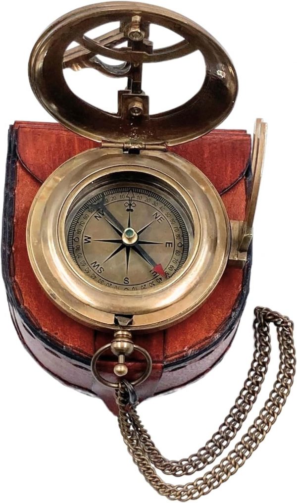 Compact Size: Diameter of sundial compass- 2.5 inches | Length of chain – 10 inches | Case Dimensions- 3x3x2 inches, making it portable and easy to carry.