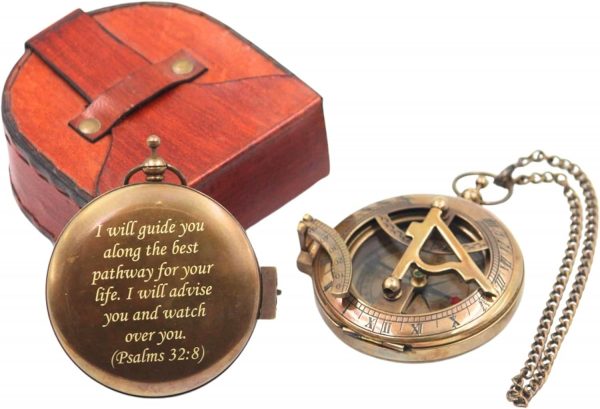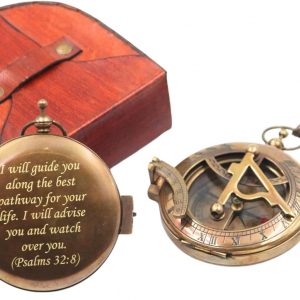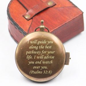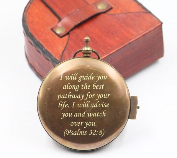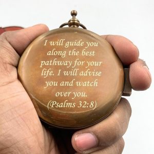 Engraved Compass: Crafted with an antique brass finish, this compass features the inspiring quote from Psalms 32:8 : “I will guide you along the best pathway for your life. I will advise you and watch over you.” It’s a powerful reminder for life’s journey.