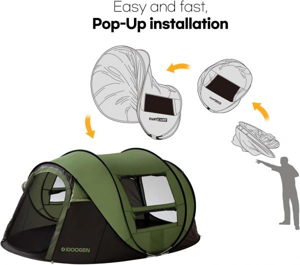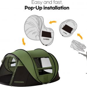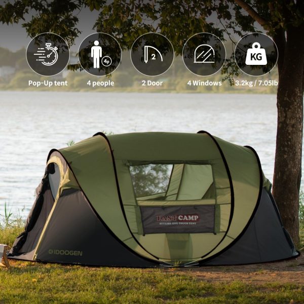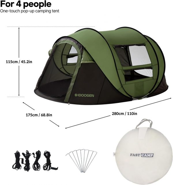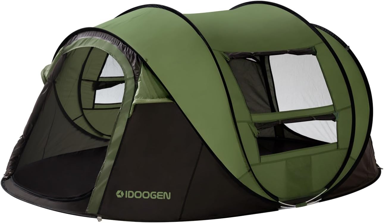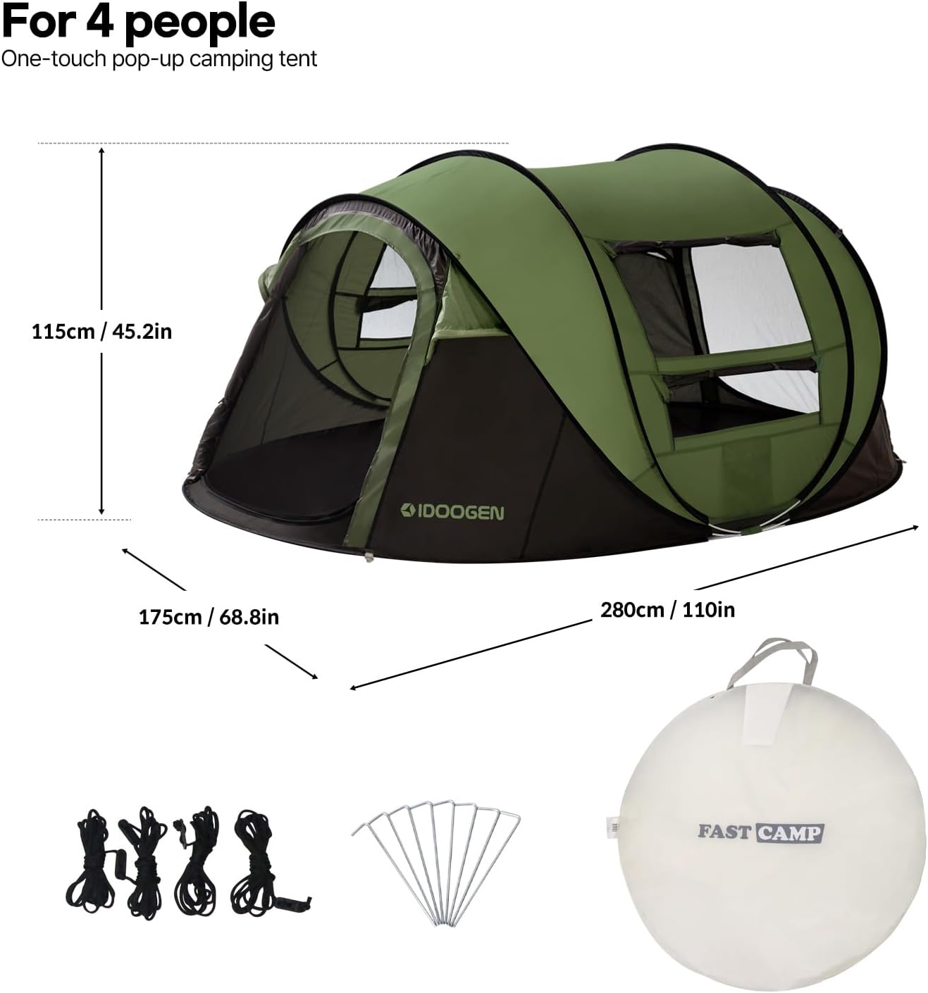 IDOOGEN 4 Person Pop Up Tent for Camping, Waterproof Easy Set Up Instant Family Tent with 2 Doors for Camping Hiking