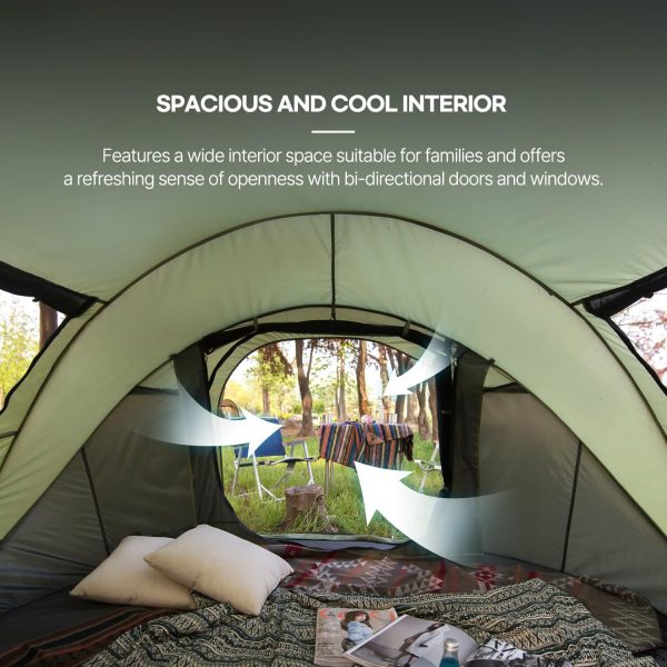 【Good Ventilation】The upgraded 4 person tent has 2 doors and 4 mesh windows to provide optimal ventilation while keeping bugs out. The foldable hidden wall on the door provides separate space and privacy depending on the usage environment.