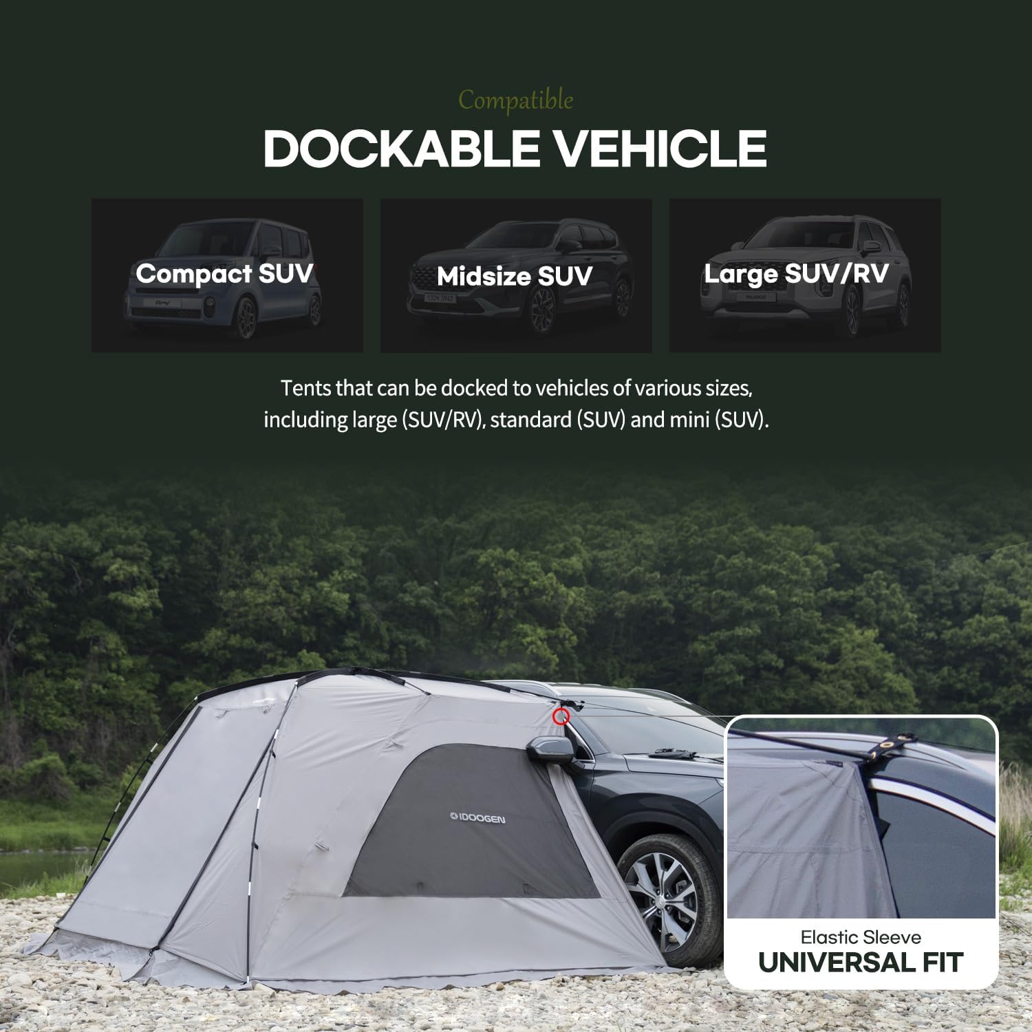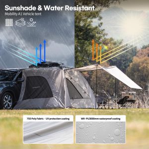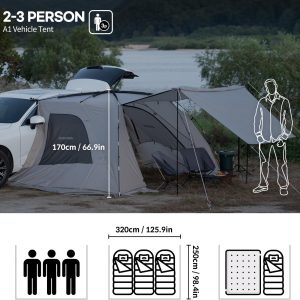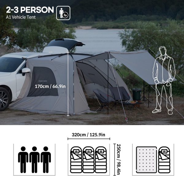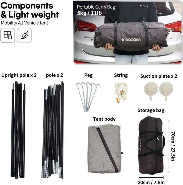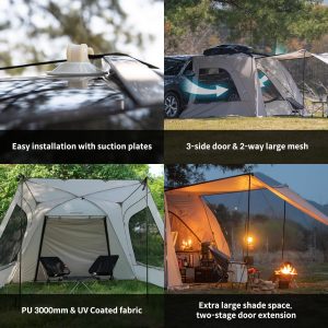 IDOOGEN SUV Tents for Camping, Waterproof Tailgate Tent with Shade Awning Portable Car Side Tents with 3 Doors & 2 Mesh Windows Hatchback Tent for SUV MPV Van,Middle(67′)