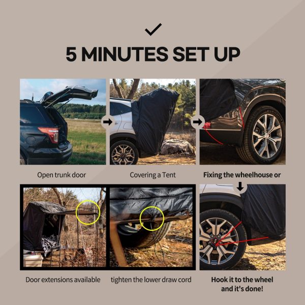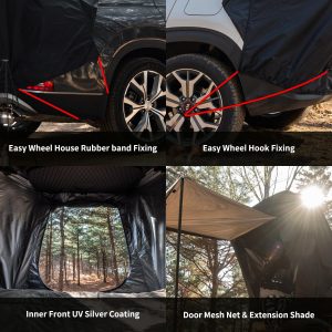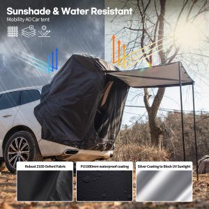⏱【𝙌𝙪𝙞𝙘𝙠 𝙖𝙣𝙙 𝙀𝙖𝙨𝙮 𝙄𝙣𝙨𝙩𝙖𝙡𝙡𝙖𝙩𝙞𝙤𝙣 𝙞𝙣 𝙅𝙐𝙎𝙏 𝟱 𝙈𝙞𝙣𝙪𝙩𝙚𝙨】This camping tent for SUV is extremely simple to set up and take down, and it can be done by one person in just 5 minutes. It’s lightweight for easy carrying and compact for convenient storage. The convenience of this sun shade tent is unparalleled, offering a quick and hassle-free way to create shade and shelter while you’re on the move.