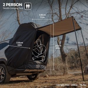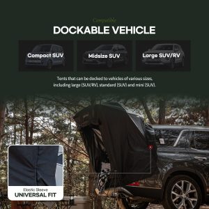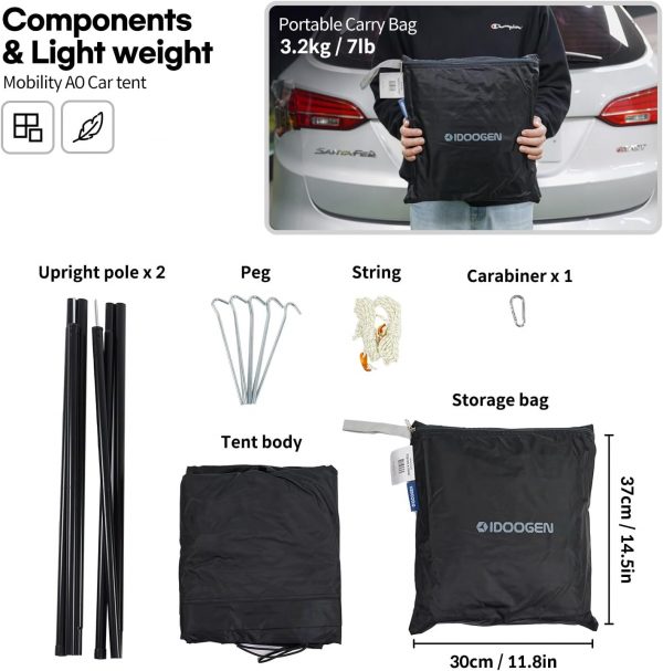 It’s ultra light at 2.7 pounds and even beginners can install it in 5 minutes.Dockable to small to large SUV trunks and close installation with draw cord lock.PU, UV-silver coated fabric enables general waterproofing and UV protection.Enjoy convenient stealth car camping easily and quickly. Lightly anytime, anywhere, such as a field, camping site, parking lot, etc.