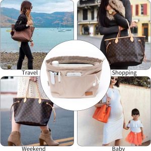 FEATURE: This Multi-pocket handbag helps you organize your personal stuff neat and tidy to make your tote bag in order and increase the capacity