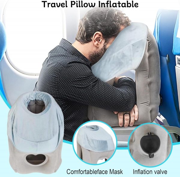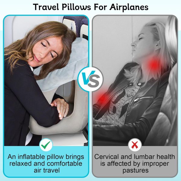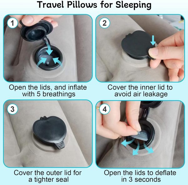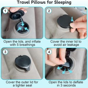 3.【Fast Inflation & Deflation】The neck pillow for airplanes is designed with a unique large-diameter air valve to increase inflation efficiency. It can be inflated by breathing only 5 times. When it needs to be packed away, simply pull the valve and it deflates quickly in 3 seconds. It is not recommended to inflate it too much, leaving some space makes the travel pillow softer.