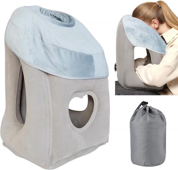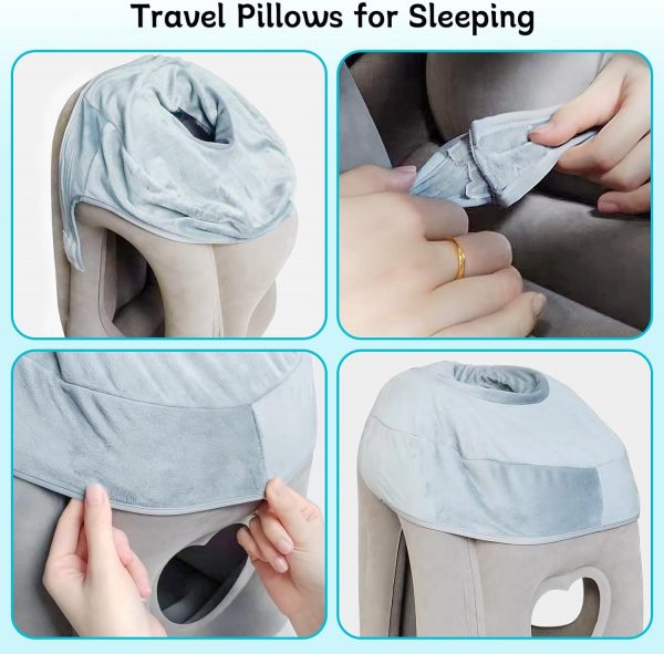 1.【Unparalleled Design】 Our travel neck pillow offers enhanced comfort for long journeys, featuring a 45° angle design that allows your head and neck to lean forward naturally, reducing pressure on the cervical spine, fitting the contour of your face and reducing face pressure with a middle hollow design that doesn’t put pressure on the abdomen, allowing for smoother breathing, and providing an arm placement area on both sides to prevent arm numbness and pain.