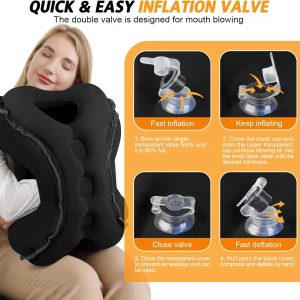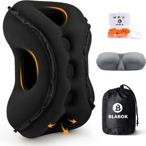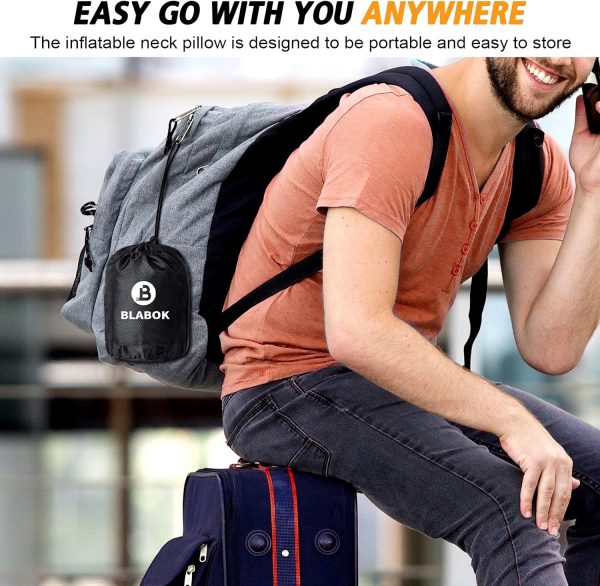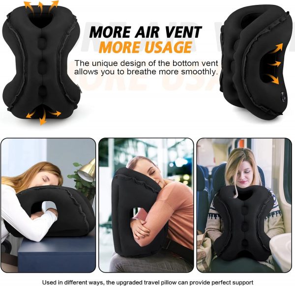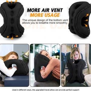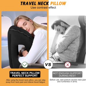 Inflatable Travel Pillow,Multifunction Travel Neck Pillow for Airplane to Avoid Neck and Shoulder Pain,Support Head,Neck,Used for Sleeping Rest, Airplane and Home Use,with Eye Mask, Earplugs, Black