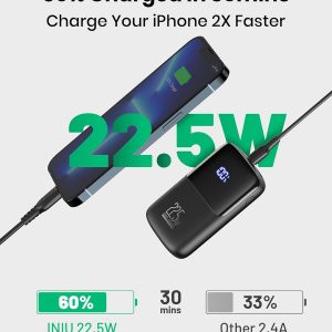 Product 2: ✅【𝟐𝟐.𝟓𝐖 𝐒𝐩𝐞𝐞𝐝𝐲 𝐂𝐡𝐚𝐫𝐠𝐞】INIU 22.5W power bank combines the most advanced PD 3.0 & QC 4+ fast charging technologies—incredibly fast fuel your new iPhone from 0 to 60% in 30mins, nearly 2X faster than original 2.4A chargers.