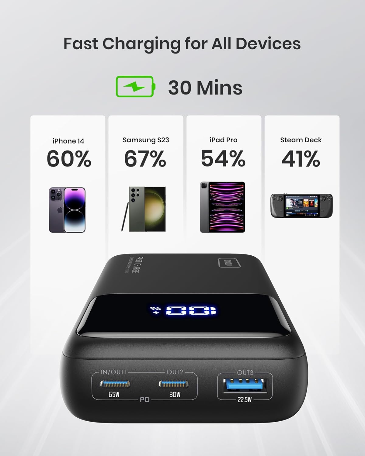 INIU Power Bank, 25000mAh 65W USB C Laptop Portable Charger, PD QC Fast Charging 3-Output External Battery Pack for Laptop MacBook Dell XPS iPad Tablet Steam Deck iPhone 15 14 13 Pro Samsung S22 etc