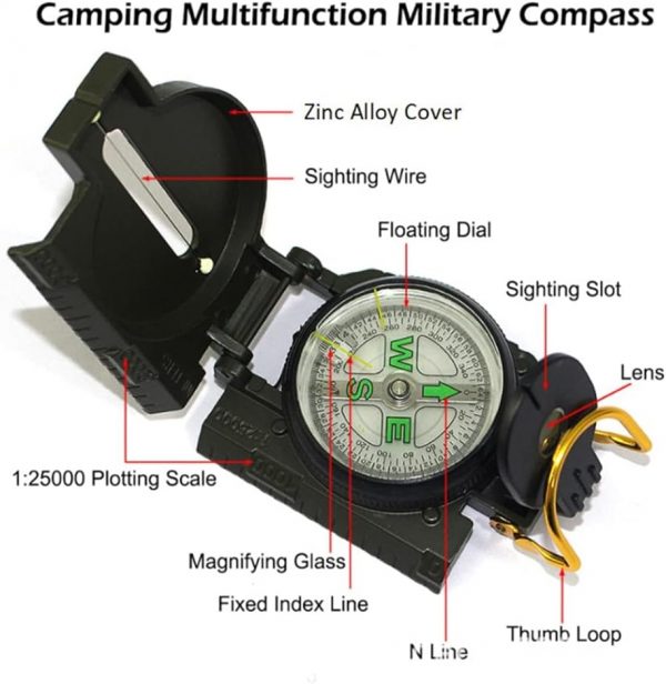 Istarziberlla Camping Multifunction Military Compass – Survival Lensatic Sighting Compass with Lens Accurate Waterproof Compasses with Pouch for Hiking Camping Navigation Backpacking Orienteering