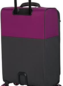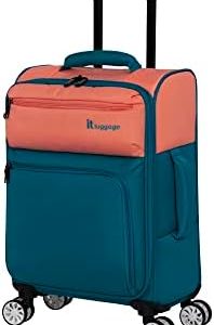 Travel confidently with the Duo-Tone Collection from IT Luggage. The aluminum trolley system helps to minimize the weight while maximizing strength as you glide to your destination on an 8-wheel rolling system offering excellent control and maneuverability. The large outer pockets allow easy access to your most essential travel items while the spacious lined interior means you can pack more in on your next journey. The padded top and side handle make travel a breeze and with a 10-year warranty you are assured quality in every suitcase. The Duo-Tone collection is going to make your next trip a seamless one.