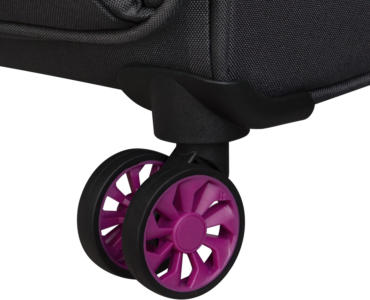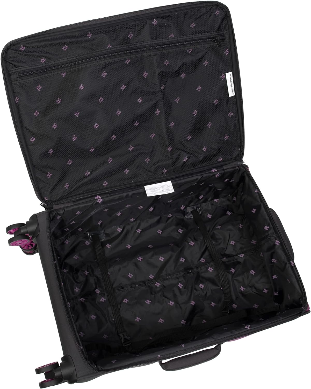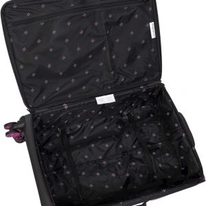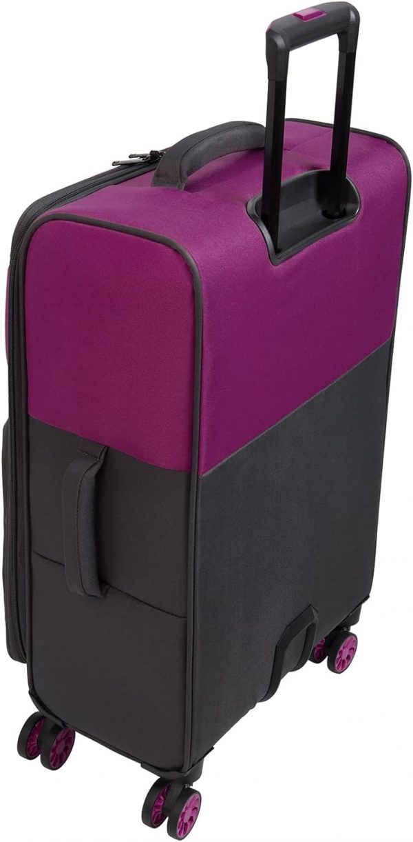 Travel confidently with the Duo-Tone Collection from IT Luggage. The aluminum trolley system helps to minimize the weight while maximizing strength as you glide to your destination on an 8-wheel rolling system offering excellent control and maneuverability. The large outer pockets allow easy access to your most essential travel items while the spacious lined interior means you can pack more in on your next journey. The padded top and side handle make travel a breeze and with a 10-year warranty you are assured quality in every suitcase. The Duo-Tone collection is going to make your next trip a seamless one.