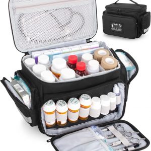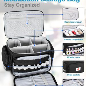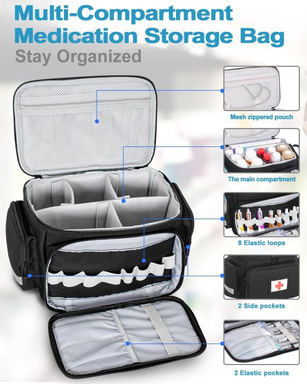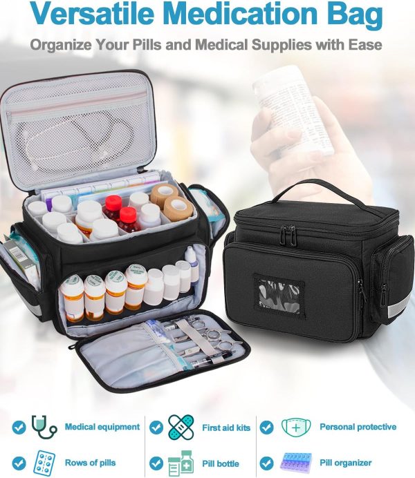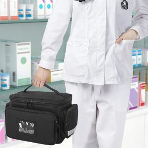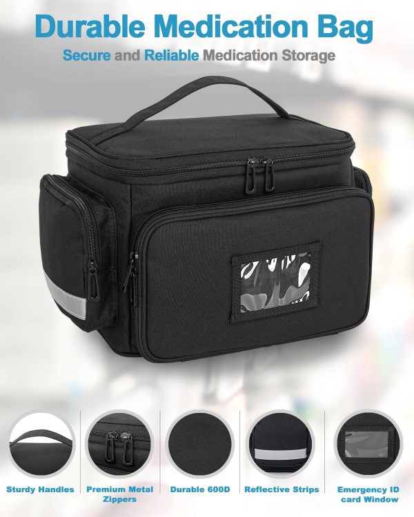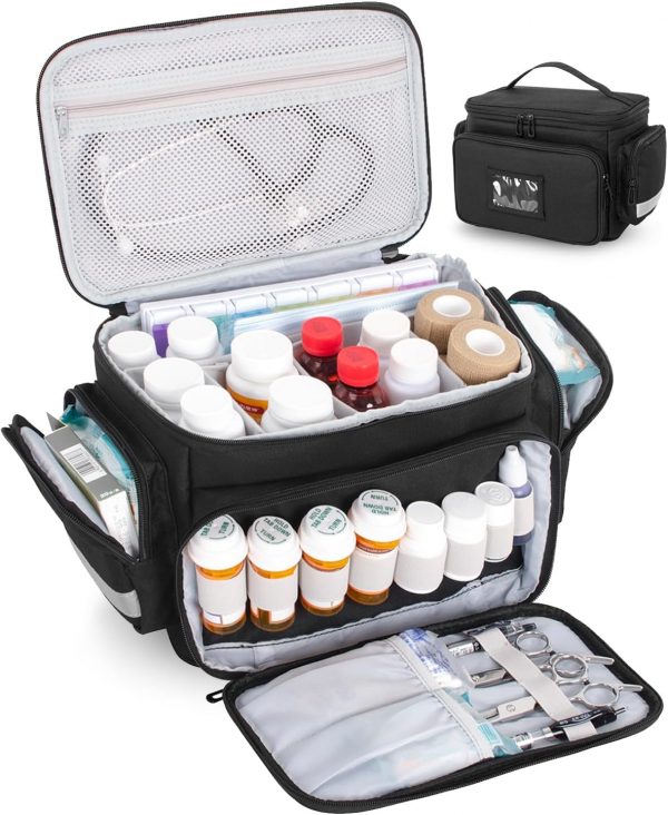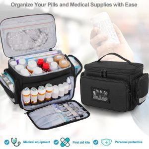 The interior of the medical bag is cleverly designed to accommodate various sizes and shapes of medicine bottles, pills, pillboxes, and other medication supplies, keeping your medications organized and easily accessible.