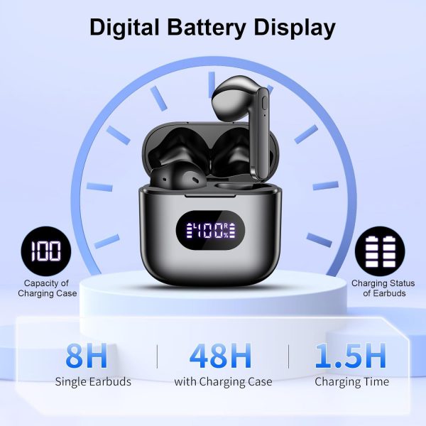 【48H Battery Life & Dual-Way to Charge】 Supported wireless charging and USB-C fast charging, the wireless earbuds can last about 8 hours playtime from a single charge. Only 1.5 hours type-C fully charged, the wireless ear bud can provide total 48 hours using time or 100 hours stand-by time.