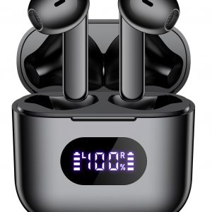 【Digital LED Power Display】 The wireless earbuds are equipped with digital LED power display that shows the charging status of the wireless ear buds and the balance of charging case. The LED light will flash the digits from 1% to 100% when charging for the case, and the flashing battery icon display the charging status of the both ear buds.