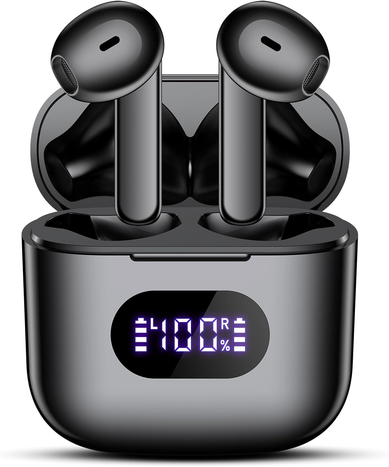 【Advances Bluetooth 5.3 & One-Step Pairing】Adopted with the latest bluetooth 5.3 chipset, the wireless earbuds have a faster and more stable Bluetooth transmission speed. No need to worry about the music or phonecall will be interrupted when using the Bluetooth earbuds. After first time connection, once you open the charging case, the ear buds will connect with the last paired device.
