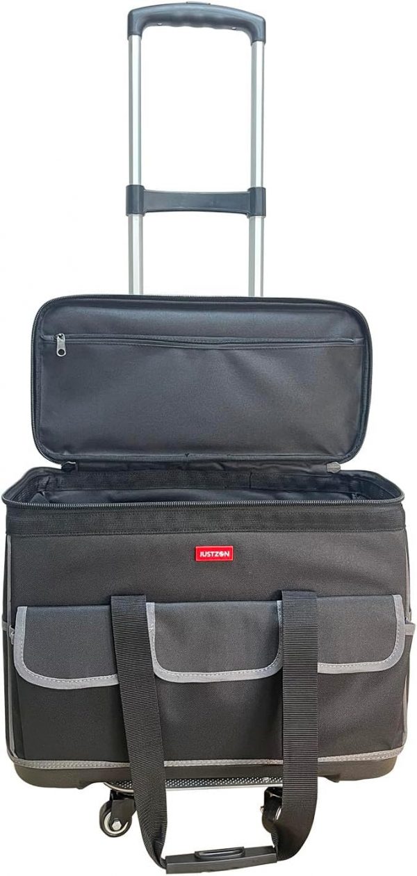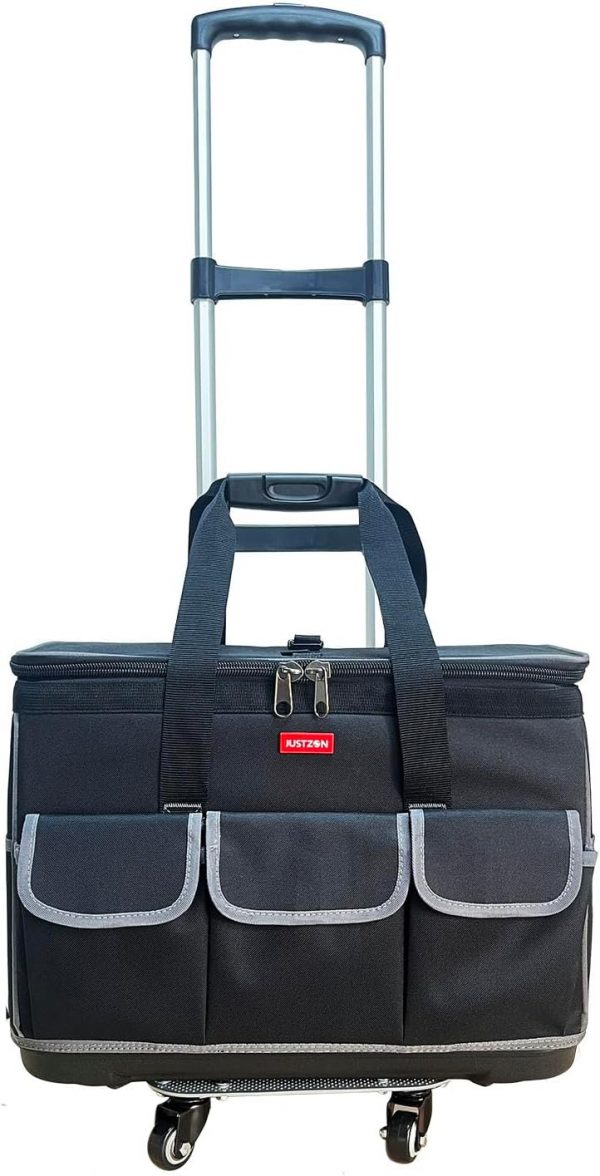 Justzon Tool Bag with Wheels Removable Rolling Tool Bag for Electrician HVAC Tool Bag Organizer with Aluminum Alloy Trolley
