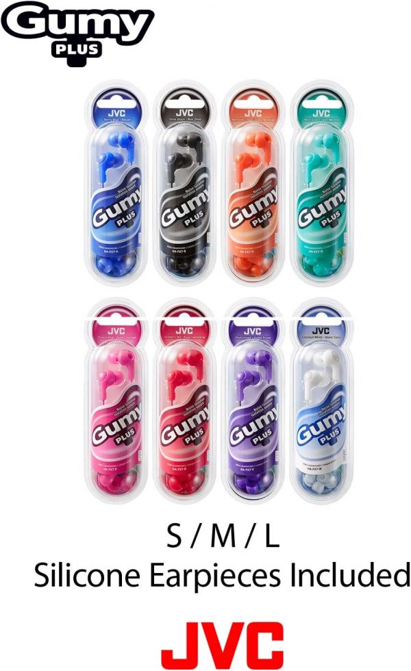 Gumy Plus colorful headphone in Black offers soft elastomer earbud for comfortable fit and feel, superior sound isolation, driven by neodymium drivers. Comes with a 3. 3′ Color cord with gold plated 3. 5mm headphone plug compatible with iPod, iPhone, Android devices. Small, Medium and large silicone replacement earpieces are included.