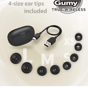 JVC New Gumy True Wireless Earbuds Headphones, Long Battery Life (up to 24 Hours), Sound with Neodymium Magnet Driver, Water Resistance (IPX4) – HAA7T2B (Olive Black), Compact