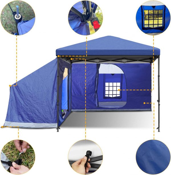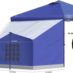 Comfortable sleeping area:This 35 sq ft side tent fits 1 queen air beds or 2 sleeping bags. A 75 in. center height offers plenty of headroom.