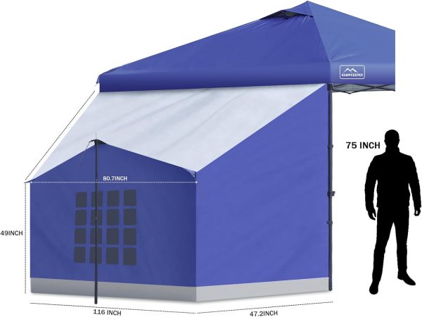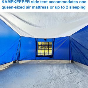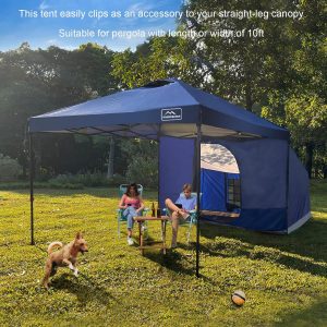 Universal:The KAMPKEEPER 2-Person Side Tent accessory for Straight-leg Canopy is great for family camping. This tent can be installed quickly and easily by clipping it to your canopy frame.Suitable for canopy tent with width or length of 10ft