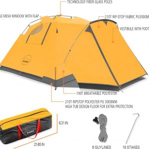 ✔KAZOO outdoor camping tent provides spacious and waterproof tent with enough features. Setup was fast and easy, it could be done within 3minutes by two persons. This family tent has spacious room (95inchx86inchx57inch) and vestibule to make it perfect as a 4 person tent. It could bring you a perfect experience in your tour for camping, hiking, fishing or relaxing. We try our best to offer you an ideal waterproof 4 person tents for camping.