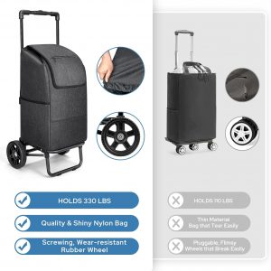 【Hard Wearing Construction】The shopping cart is constructed with sturdy materials to ensure durability and reliability. The robust wheels and frame are designed to withstand the rigors of regular use, the maximum load-bearing capacity is 330 lbs.
