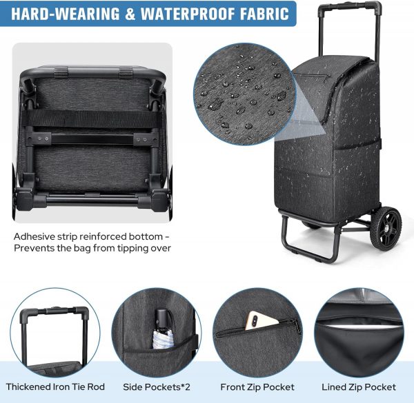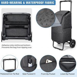 【Waterproof Convenience】The KEDSUM 2 in 1 Shopping Cart features a waterproof black bag, ensuring protection for groceries during unexpected weather conditions. This added functionality provides peace of mind and versatility for users in various climates.