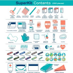 All You Need – Good things come in complete packages! Your large first aid kit has 260 pieces of essential first aid supplies for every ouchie. From burn relief to bandages, you’ll be ready for anything.