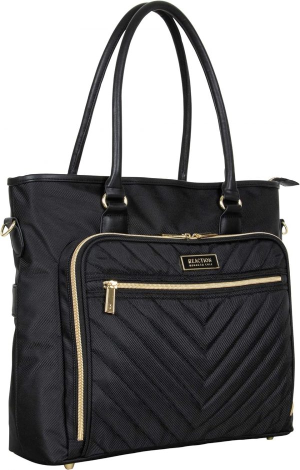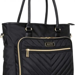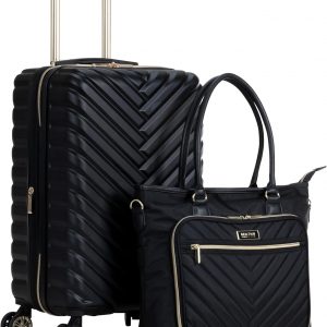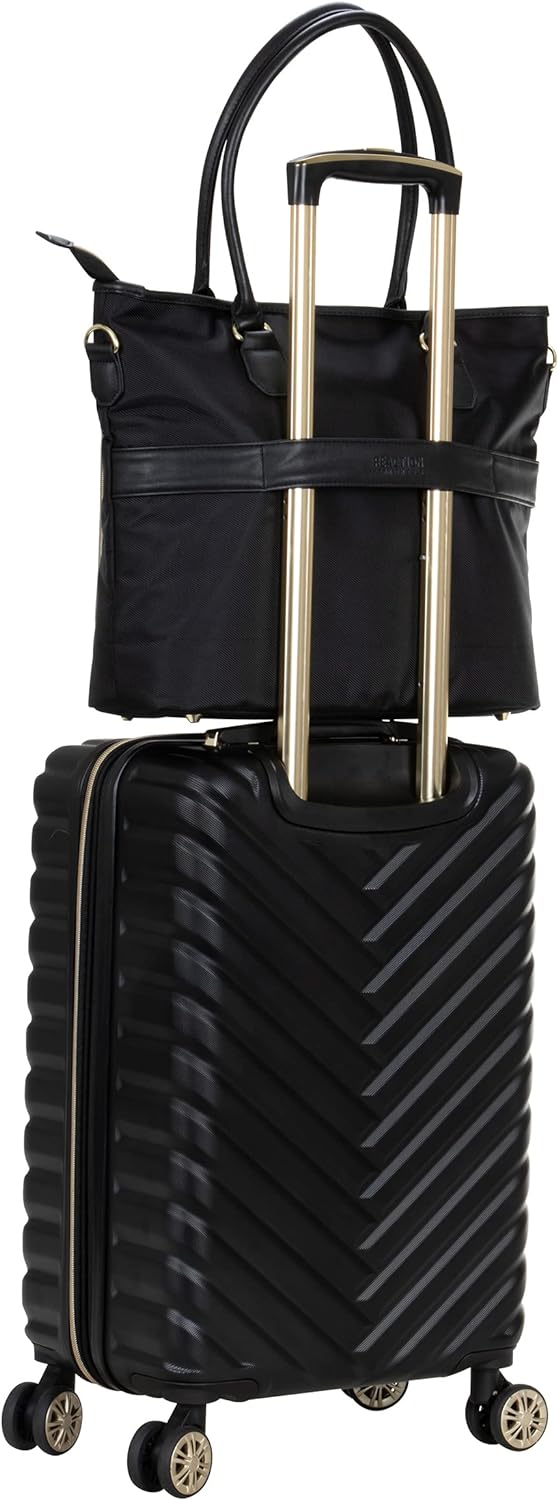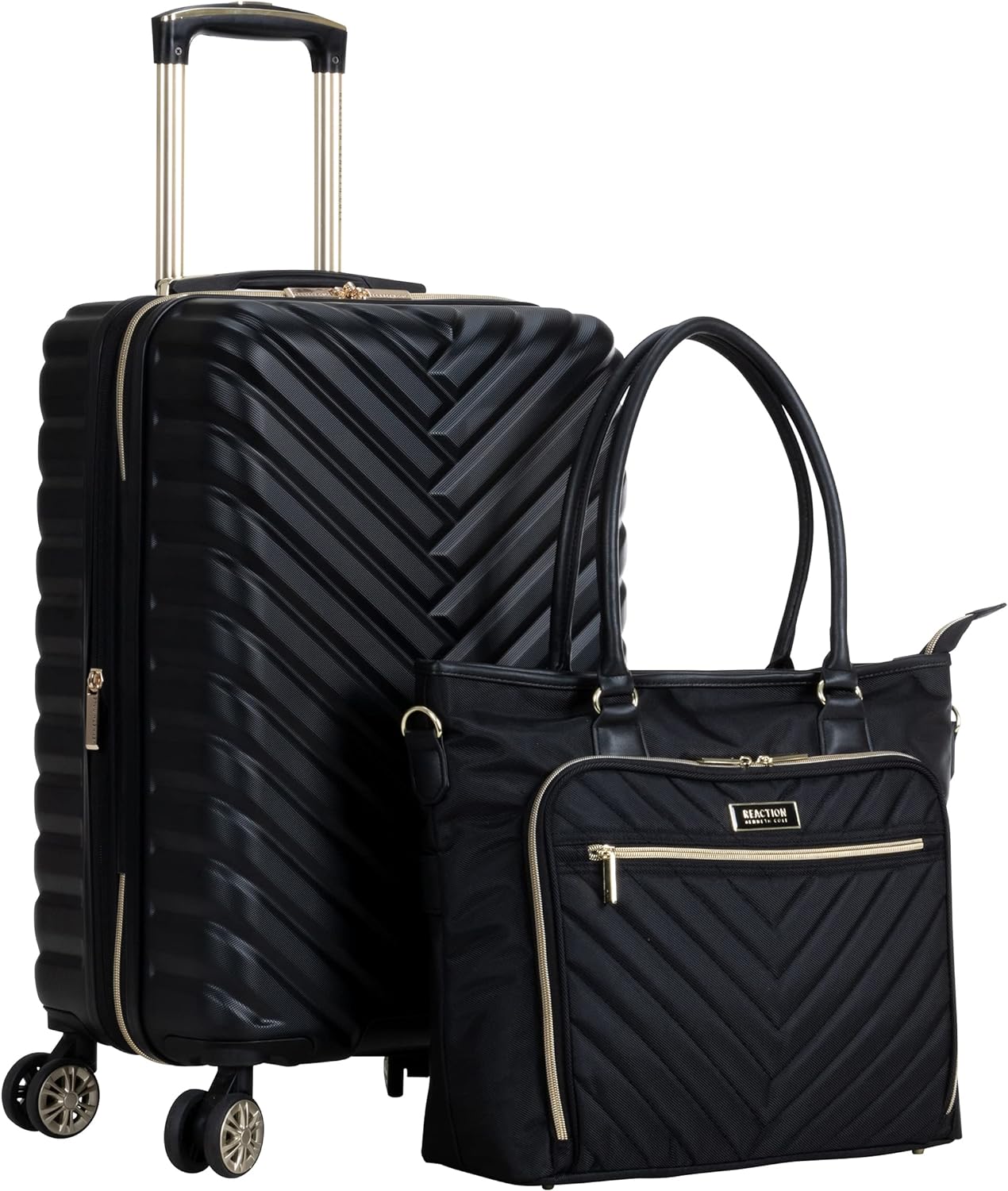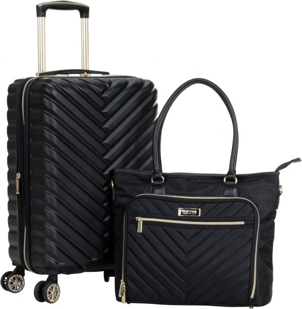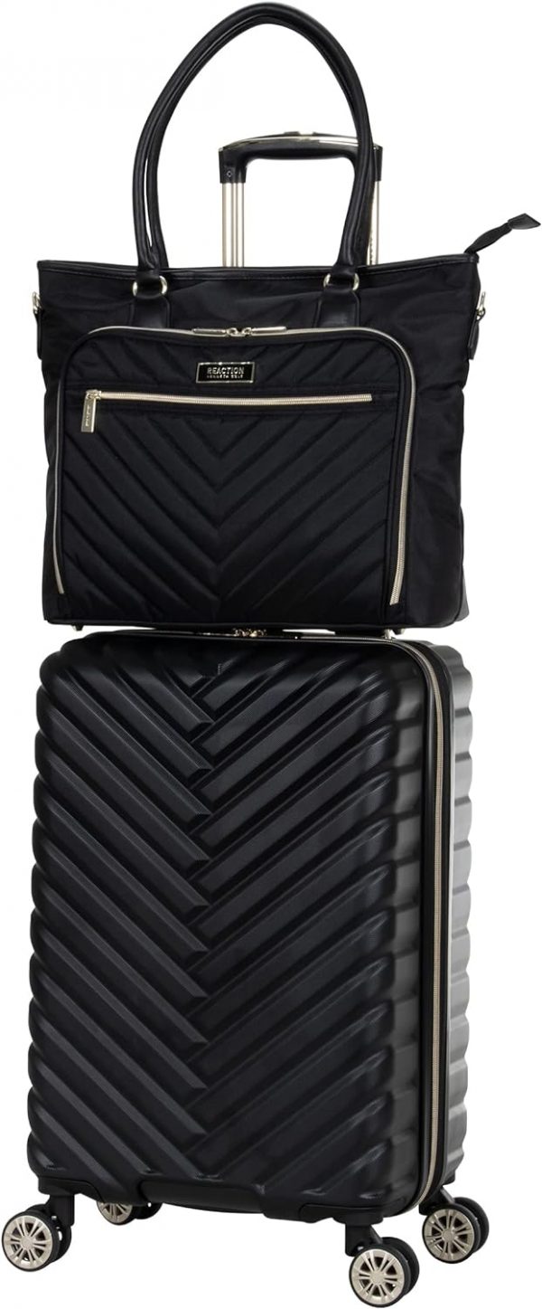 Kenneth Cole REACTION Madison Square Lightweight Hardside Chevron Expandable Spinner Luggage, Black, 2-Piece (20″ Carry On + Tote)