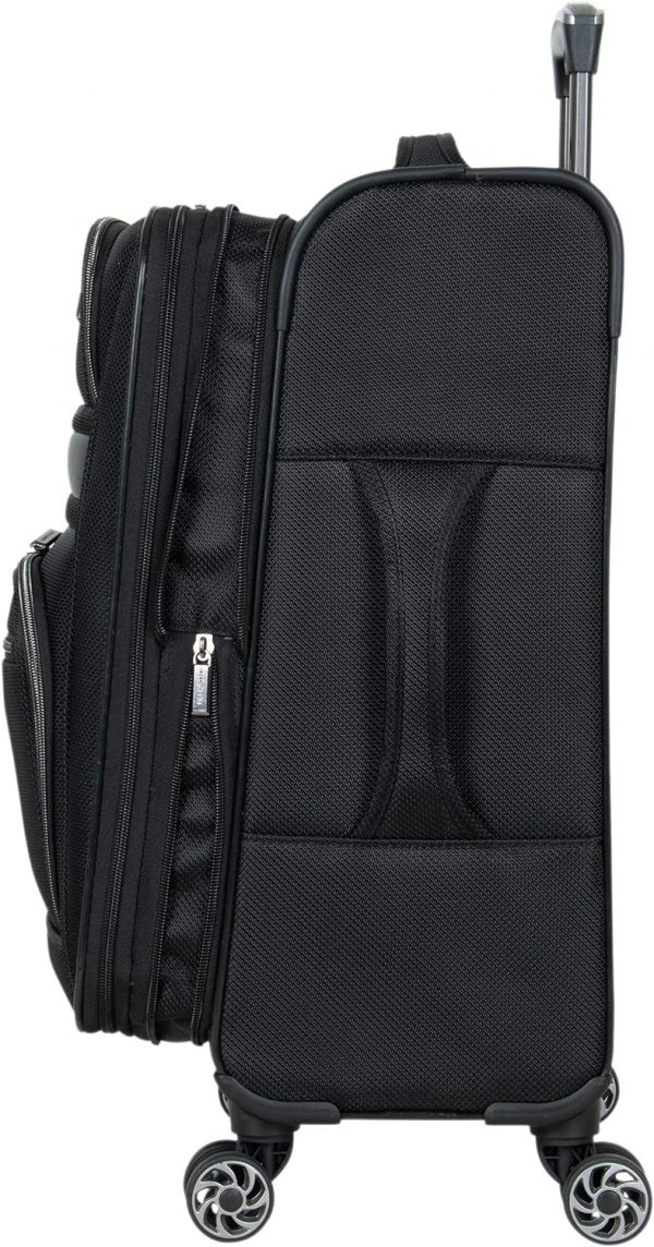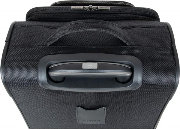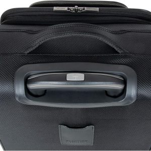 Carry-on size suitcase designed to meet U.S. based airline carry-on size requirements and designed to fits into most airline overhead bin compartments.