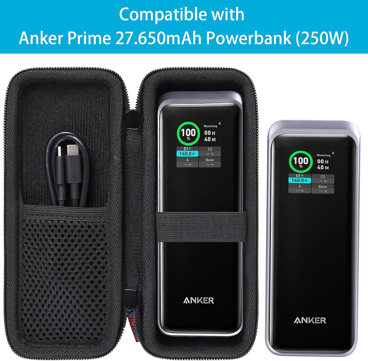 Multifunctional internal design: A buckle designed specifically for the anker portable charger,avoid impact, and improve the lifespan of the Anker Prime Power Bank, 27,650mAh 250W. In addition, it comes with a mesh bag design that can store data cable accessories required for anker charging station.