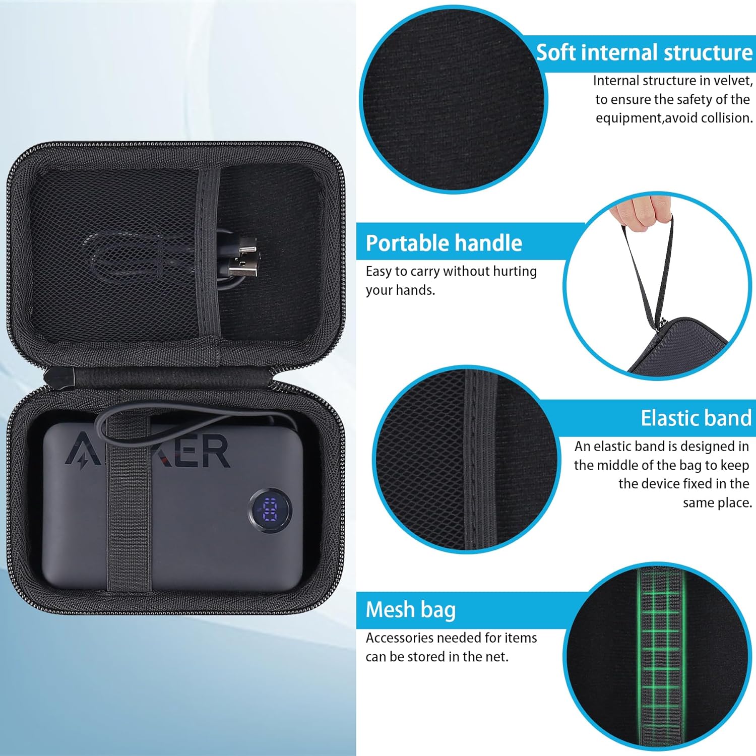 Hard case material:This anker portable charger usb-c hard shell is made of high-quality EVA material, which is shockproof, dustproof, and waterproof.It can protect your anker 20,000mAh 22.5W battery pack usb c from impact and splashing when carrying it. After using the anker anker battery bank at home, place the anker 20,000mAh 22.5W in a box to prevent it from accumulating dust.