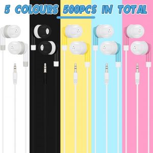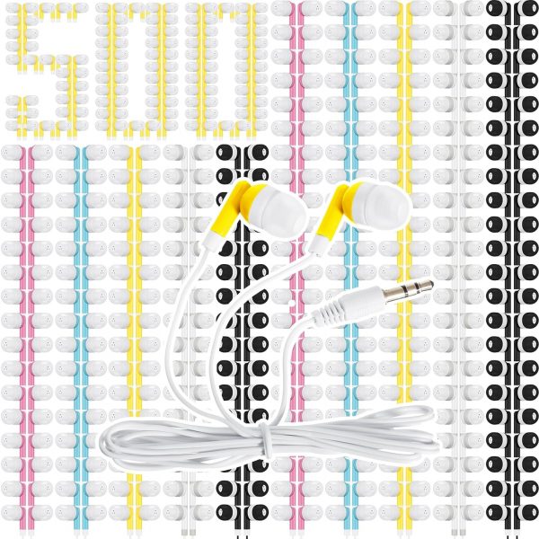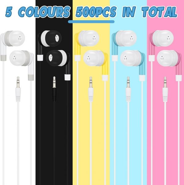 Kigeli 500 Packs Bulk Earbuds Headphones Earphones Kids in Ear Earbuds Colorful Classroom Headphone Wired Ear Buds Earphone Bulk for Smartphone Laptop Classroom School Library Kid Adult Supplies