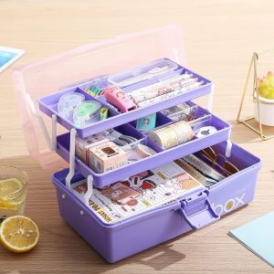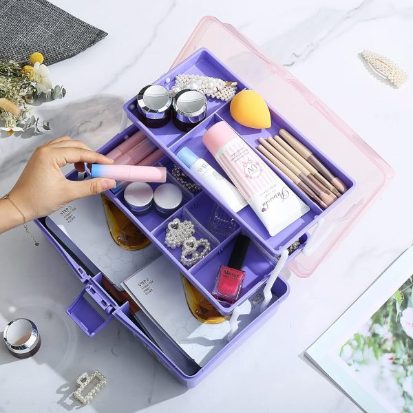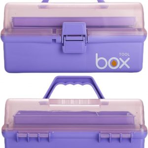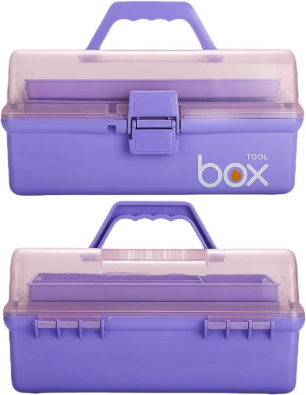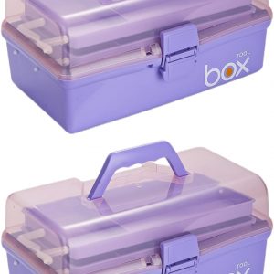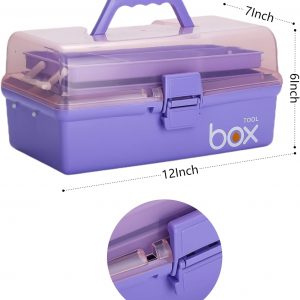 Kinsorcai 2PCS 12” Three-Layer Clear Plastic Storage Box/Tool Box, Multipurpose Organizer and Portable Handled Storage Case for Art Craft and Cosmetic (Purple)