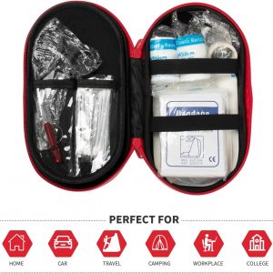 STURDY AND WATERPROOF -Not only is the first aid shell hard, pressure resistant and waterproof, but also the zipper is waterproof, so that the first aid supplies and personal items placed in the first aid box will not be squeezed and will not be afraid of moisture.