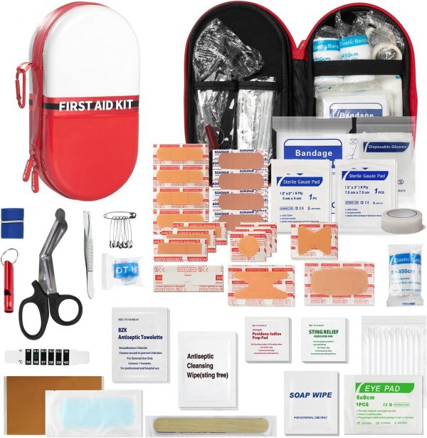 Kitgo First Aid Kit, Upgraded Waterproof Pill Case with 180 Pcs Emergency Care Supplies,Small Sized for Car, Home, Travel, Camping, College