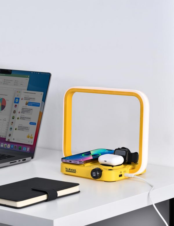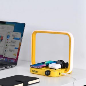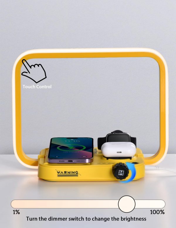 3 in 1 CHARGING STATION:The bedroom lamp is a wireless charger station, that fits nicely on the nightstand or table. The built-in charging feature allows you to power up all devices that are compatible with QI device whithout the need for extra cables and adapters taking up your space.